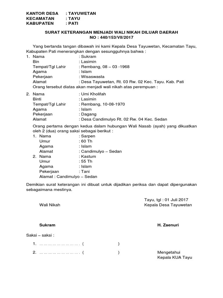 Surat kuasa wali nikah berwakil. Il y a 5 jours. Persyaratan menikah di kua · 1. Form n1 surat pengantar perkawinan. *wali hakim dijabat oleh kepala kua/ppnln.